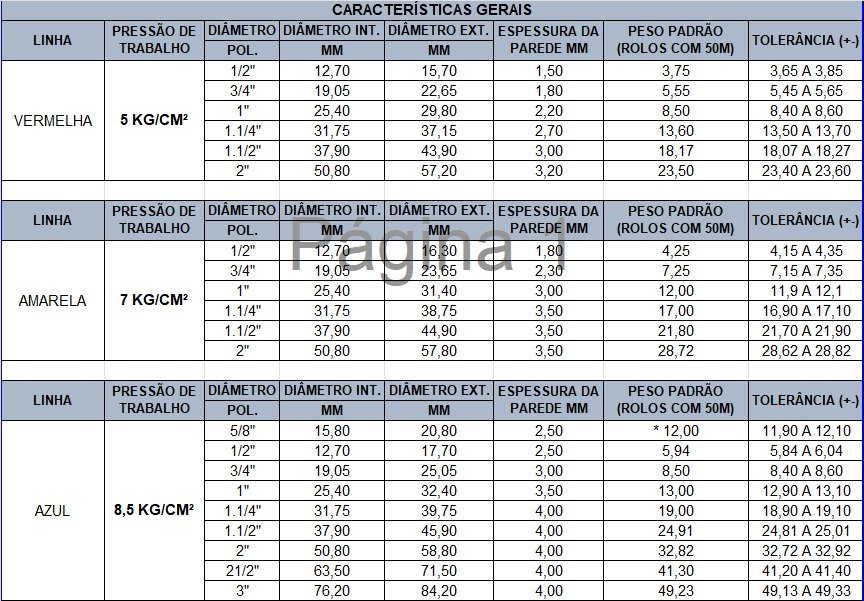 1/2″, 3/4″ e 1″ – 100m, 50m, 25m;